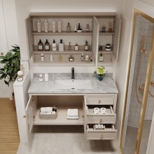 美式橡木智能現(xiàn)代輕奢衛(wèi)生間玻璃門洗臉盆柜組合